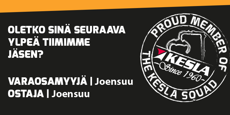 We are looking for a Spare Parts Sales Person and a Purchaser to work in our Joensuu unit. More information Mon-Fri 8-16 Spare Parts Manager Mikko Pehkonen tel. +358 40 154 4831. Applications with salary expectations latest on 17.11.2017 by mail to mikko.pehkonen[at]kesla.com.