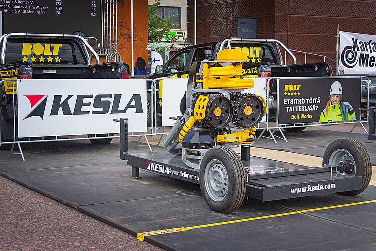 Kesla and SCL have worked together for years, with Kesla’s machinery being used as a part of the competition. This year Kesla’s event was the Wheel Barrel, in which the competitors pushed a cart fitted with KESLA 18RH-II harvester heads. Each harvester head weights around 500 kilograms, with the metal cart adding another 300 kilograms into the mix. The Wheel Barrel was the opening event on Sunday.